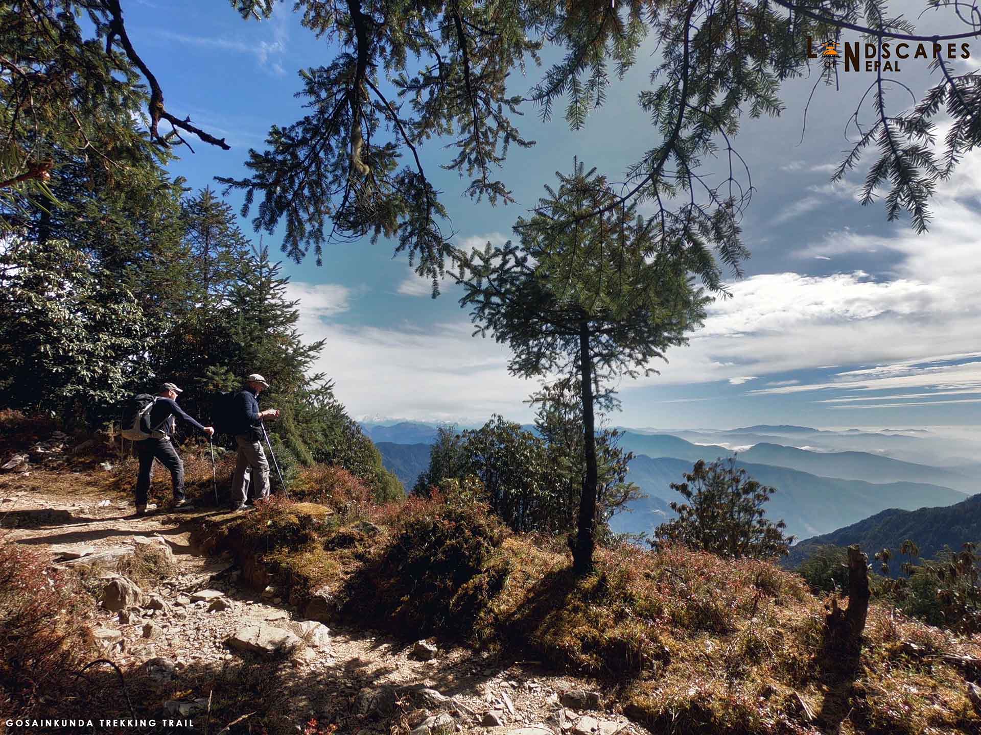 A high-altitude ridge walk with views of both Gauri Shankar and Lantang.